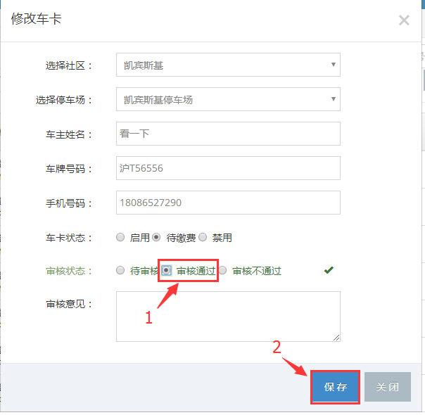 点击上图3后打开下图窗口,选择审核通过后点击保存即可完成。