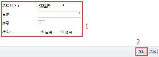 选择楼栋所处的社区,填写名称,序号,状态选择启用,点击保存即可完成楼栋的添加。