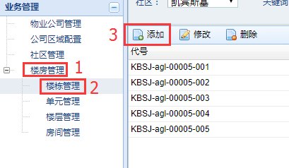 以下将会依次以楼管管理的子项按顺序添加,在此之前,你需要先添加社区管理。